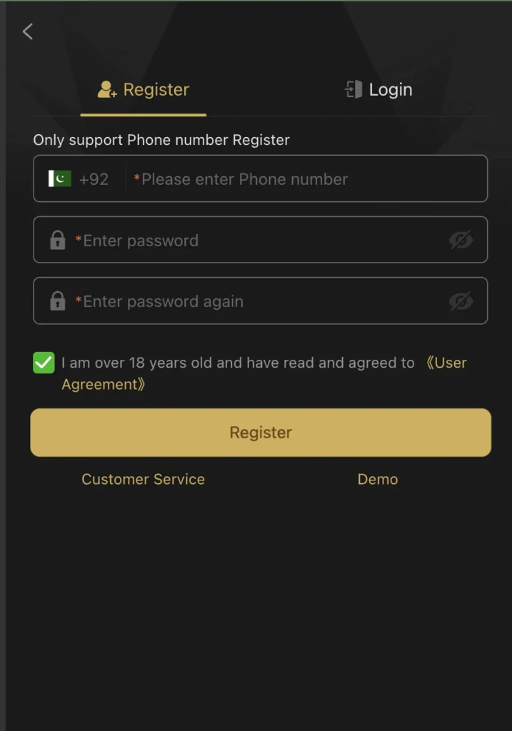 - Enter your mobile number and create a secure password.